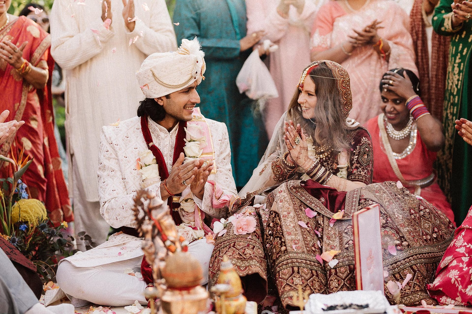 Il rito indù si è svolto sotto il mandap, tra canti, fiori e gesti simbolici che hanno unito Mariana e Vishesh in un legame sacro e senza tempo.